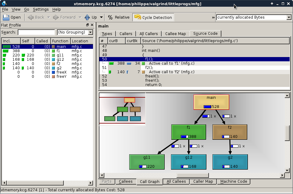 Valgrind simulates every single instruction your program executes. Because of this, the active tool checks, or profiles, not only the code in your application but also in all supporting dynamically-linked libraries, including the C library, graphical libraries, and so on.